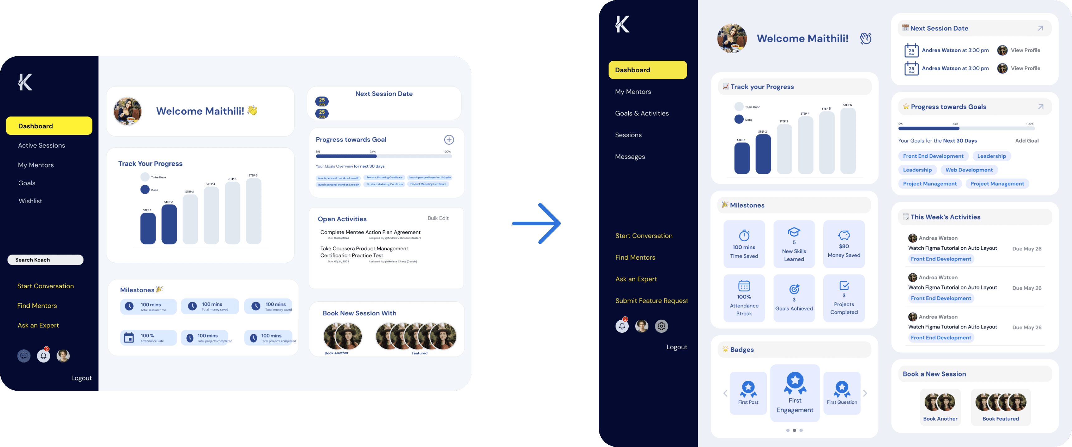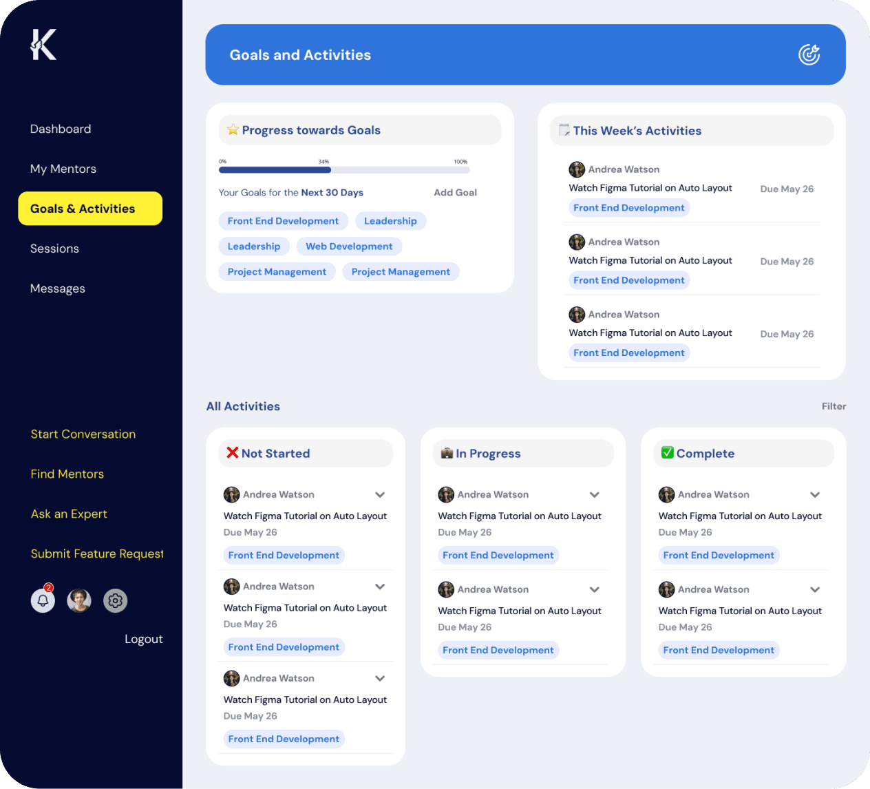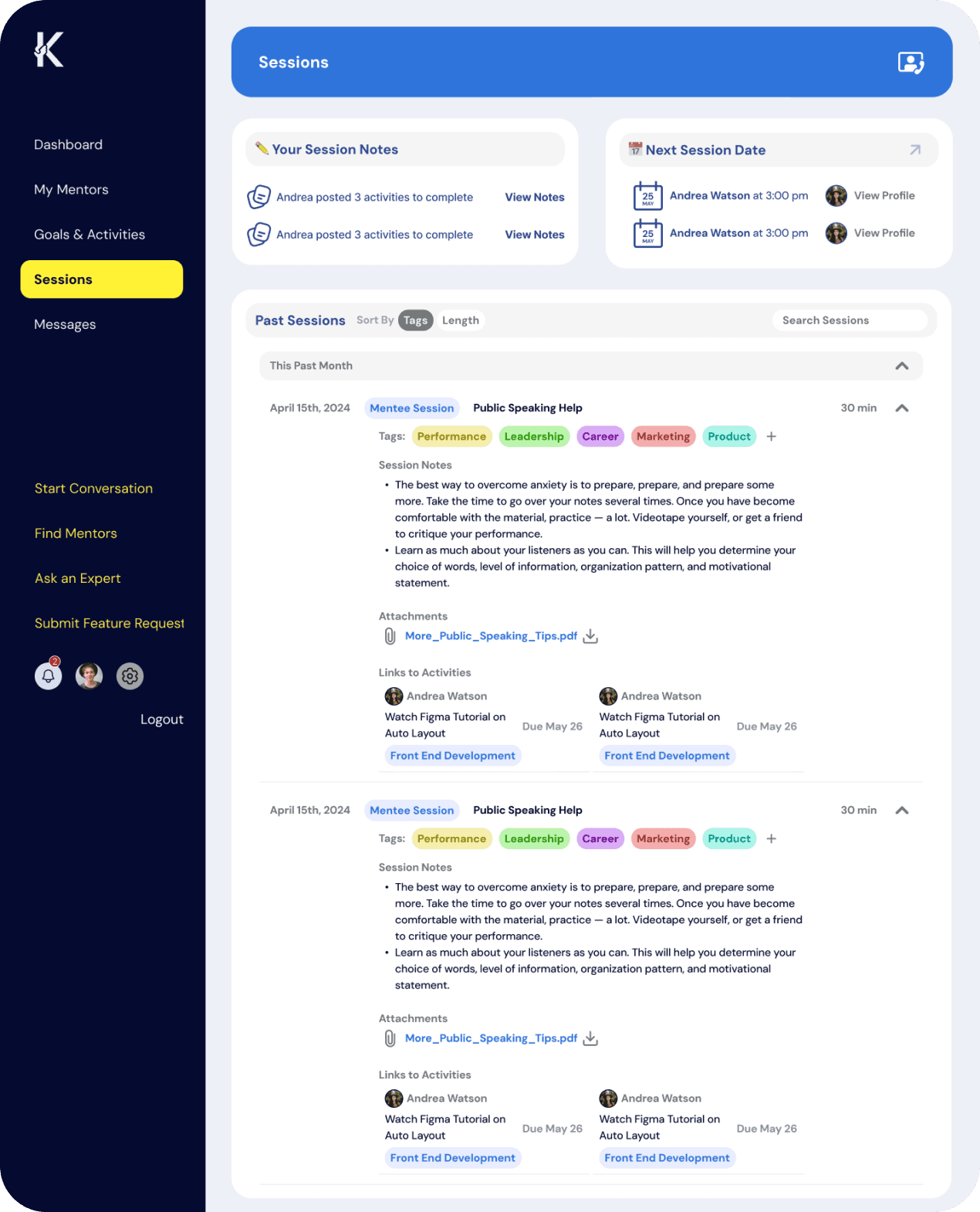 Koach is a small startup in the early-stage. Koach's goals are to provide a platform where students, entrepreneurs and anyone looking to give or gain insights into their career can connect and find mentors and mentees.