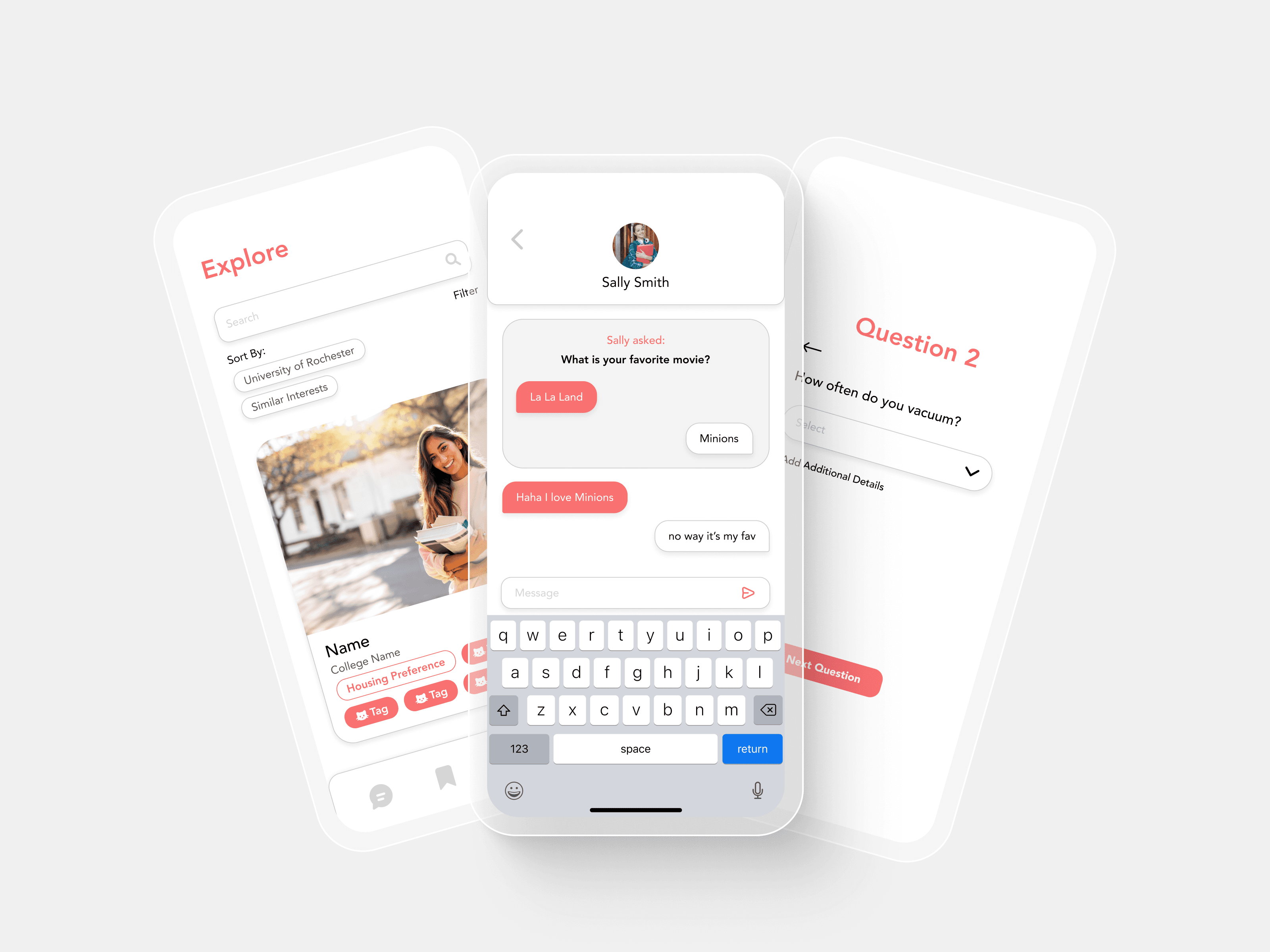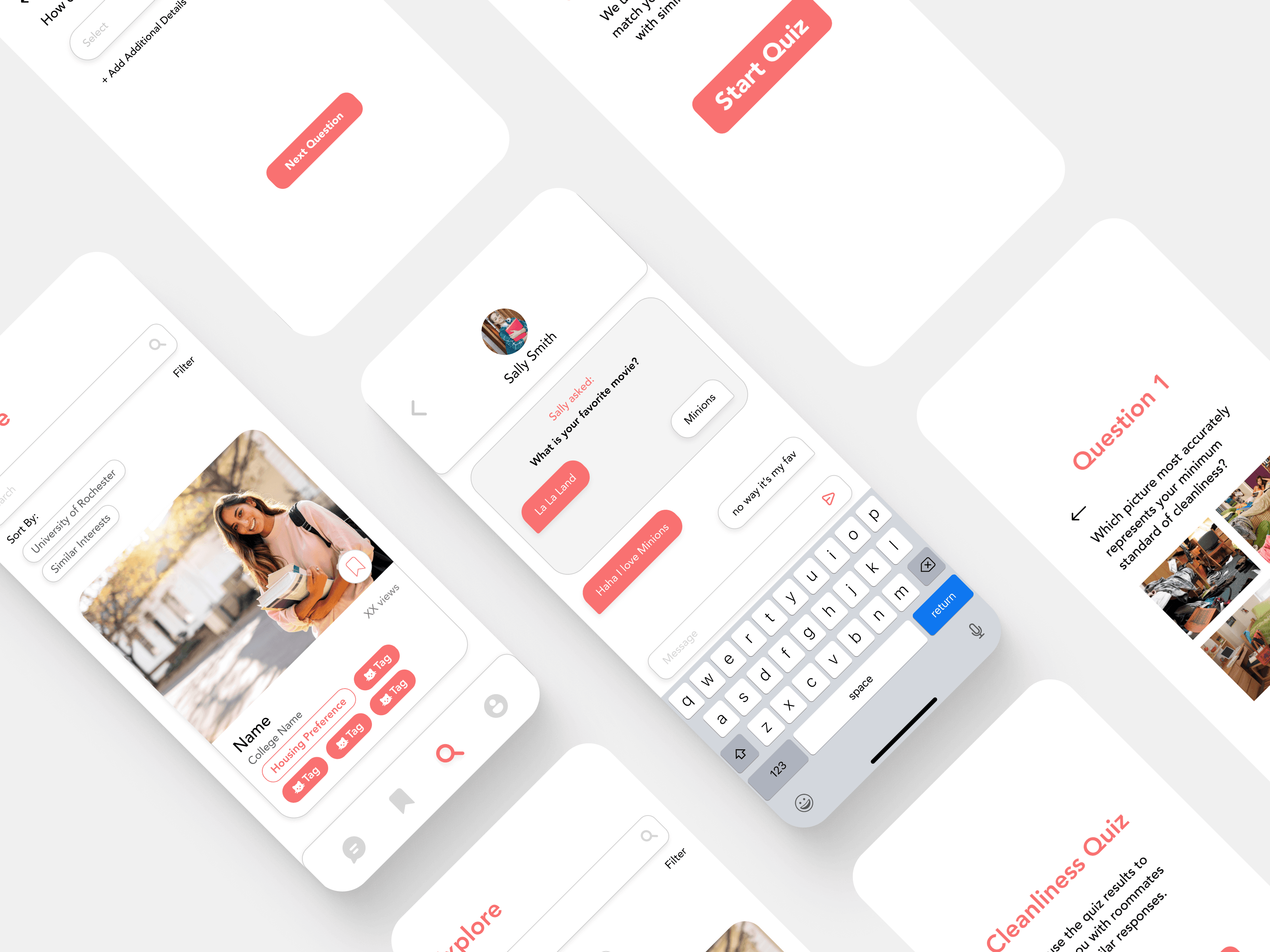 App for college students to find potential roommates by sorting through housing preferences and chatting with other users.