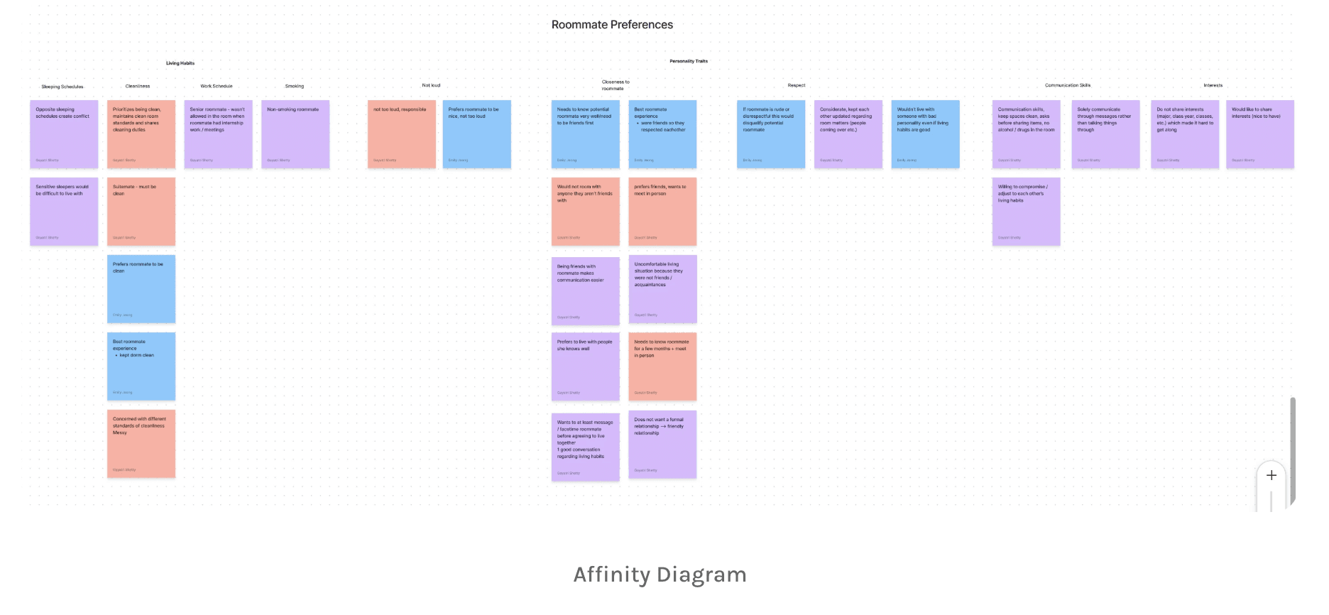 In order to better understand our interview responses, we created an affinity diagram, sorting the notes taken during interviews.