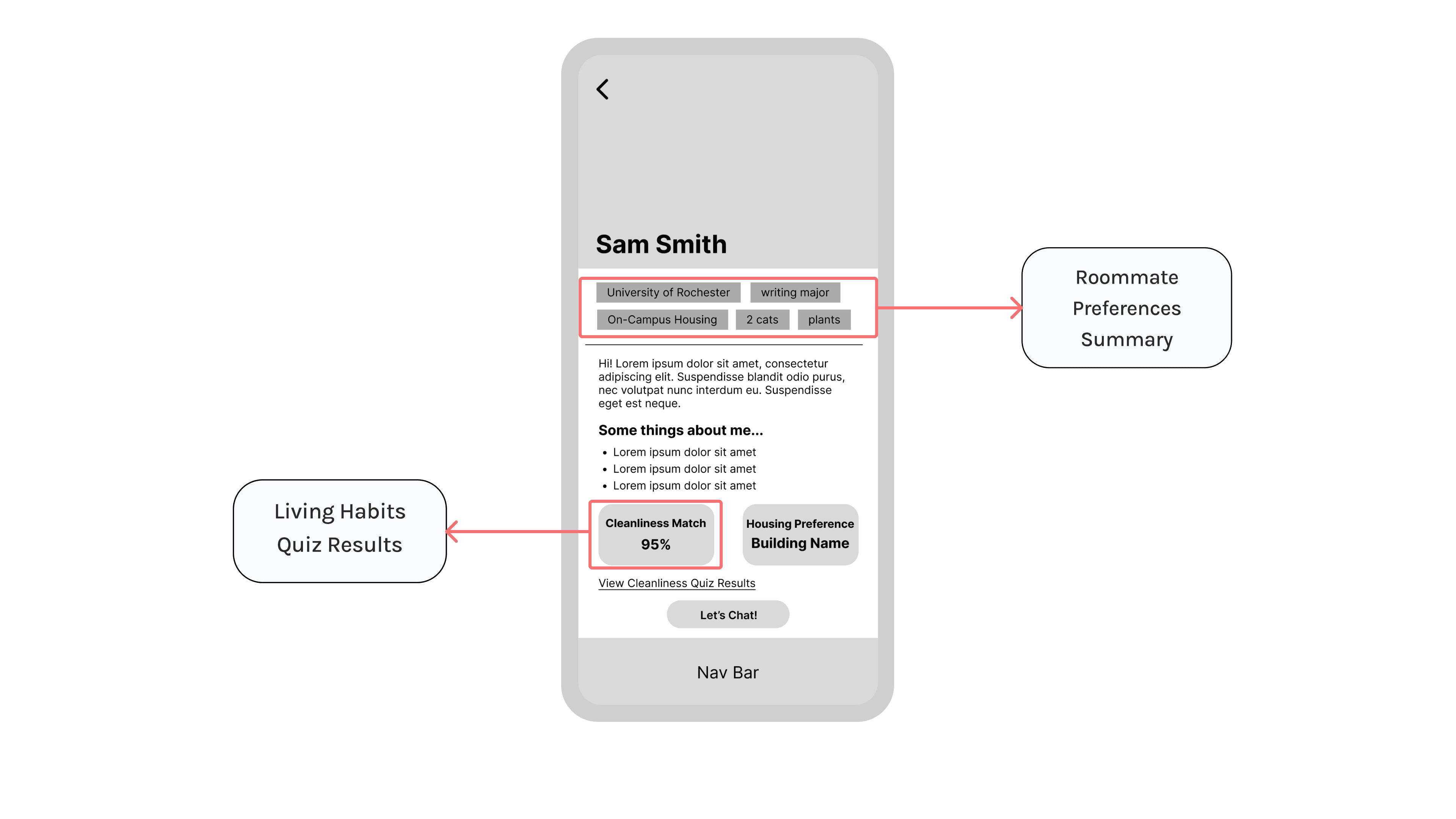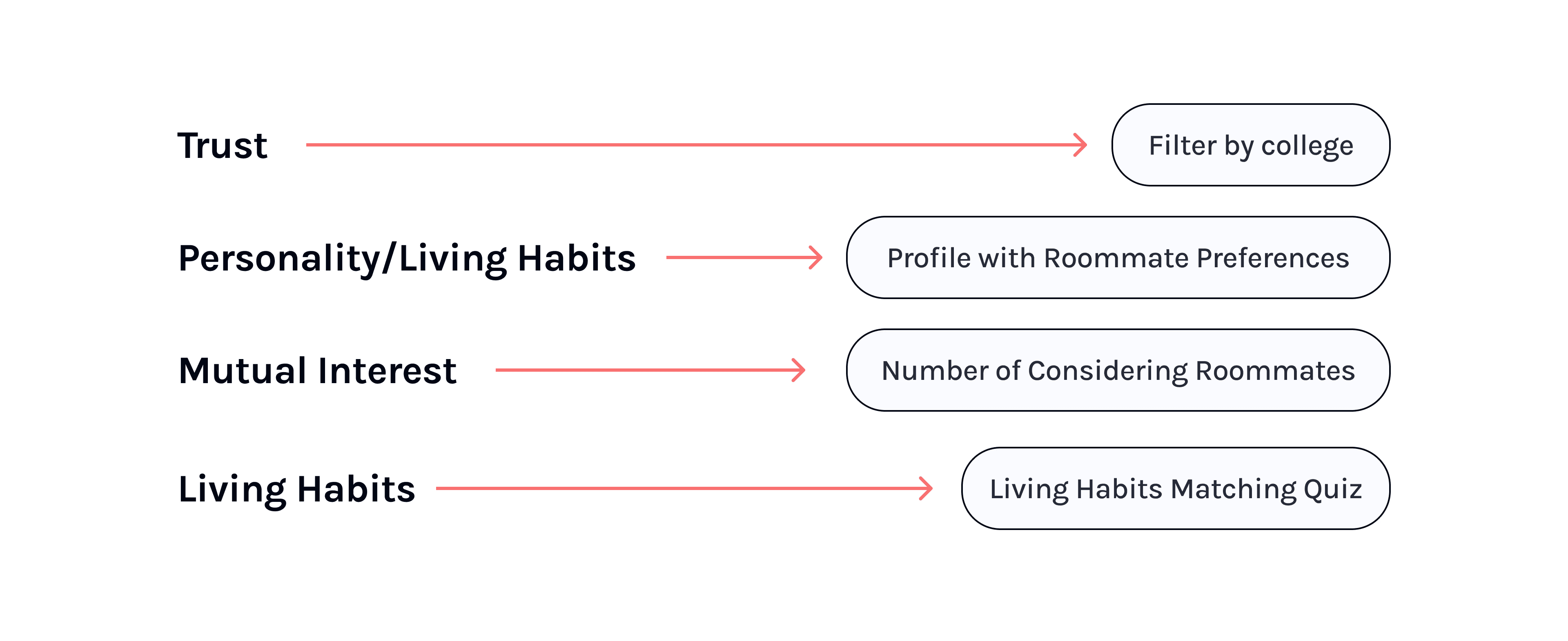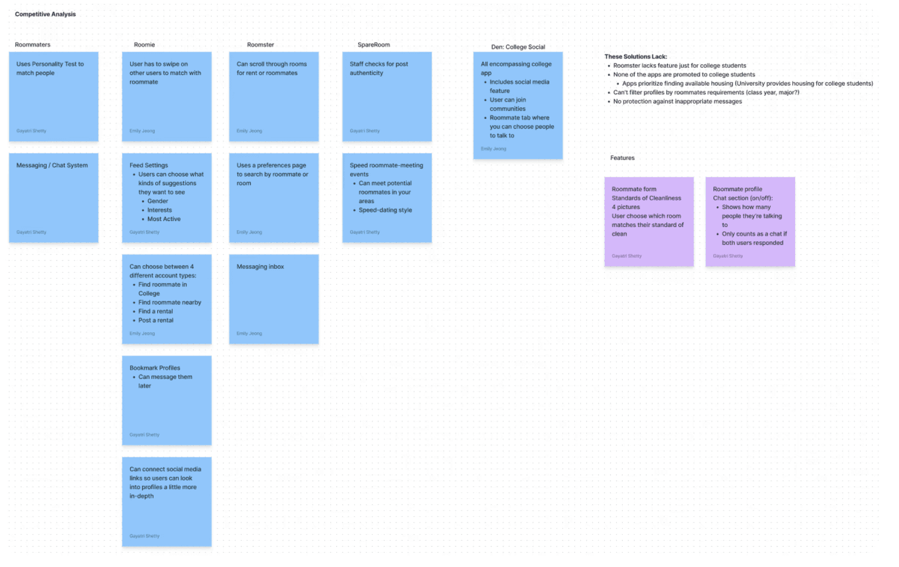 We looked at other roommate finding apps on the market to see what features they lacked, and how we might address those needs in our platform.
