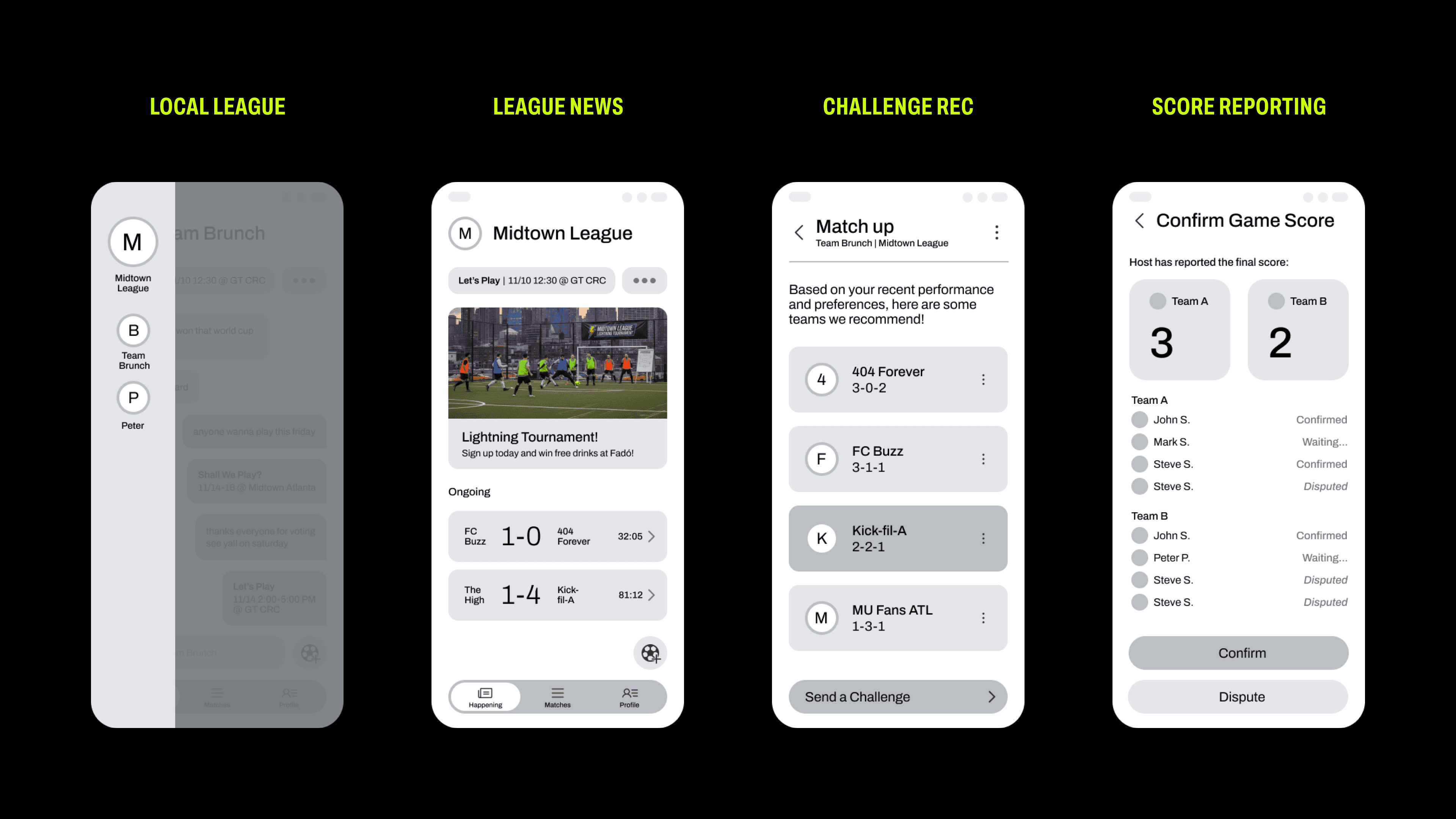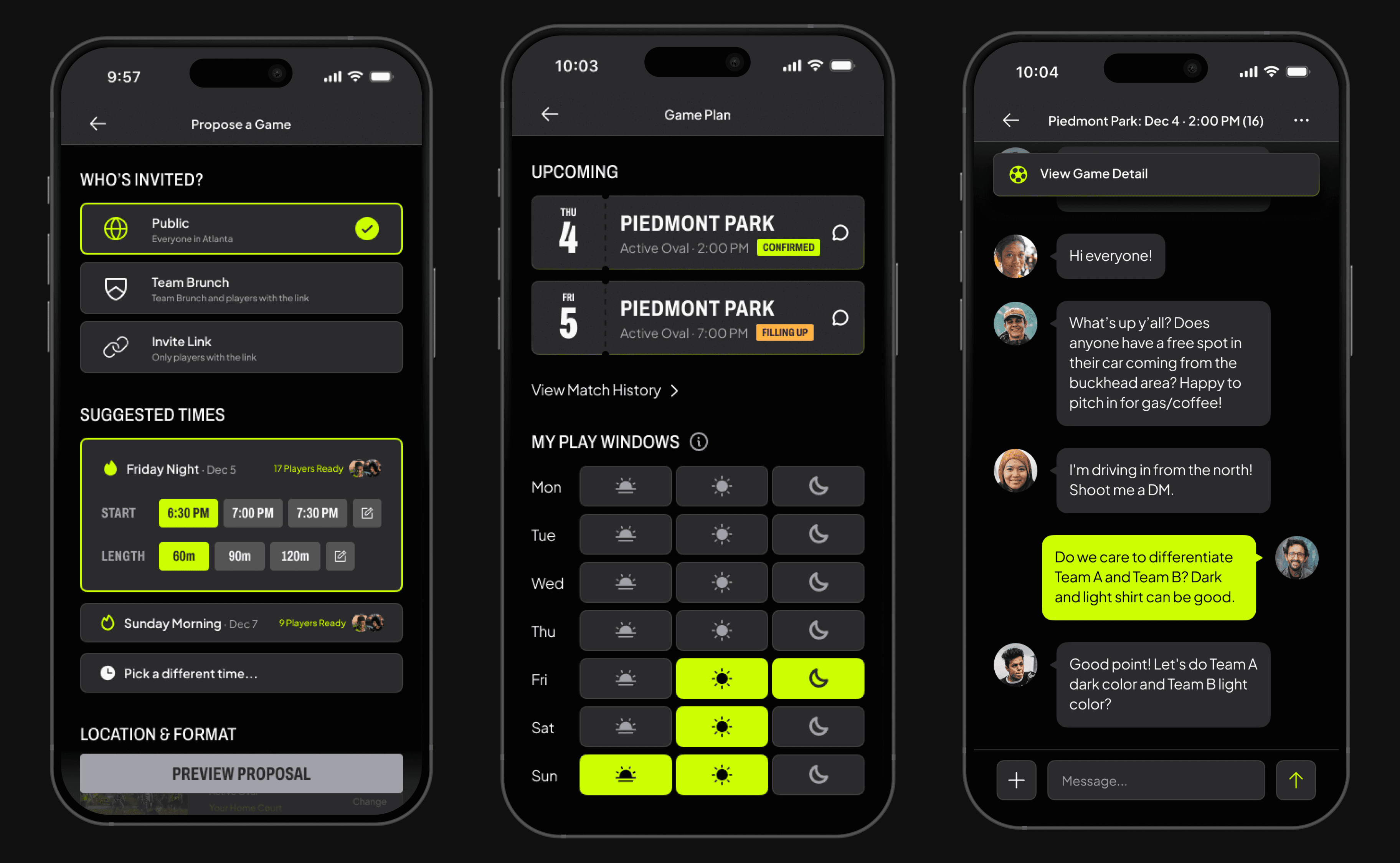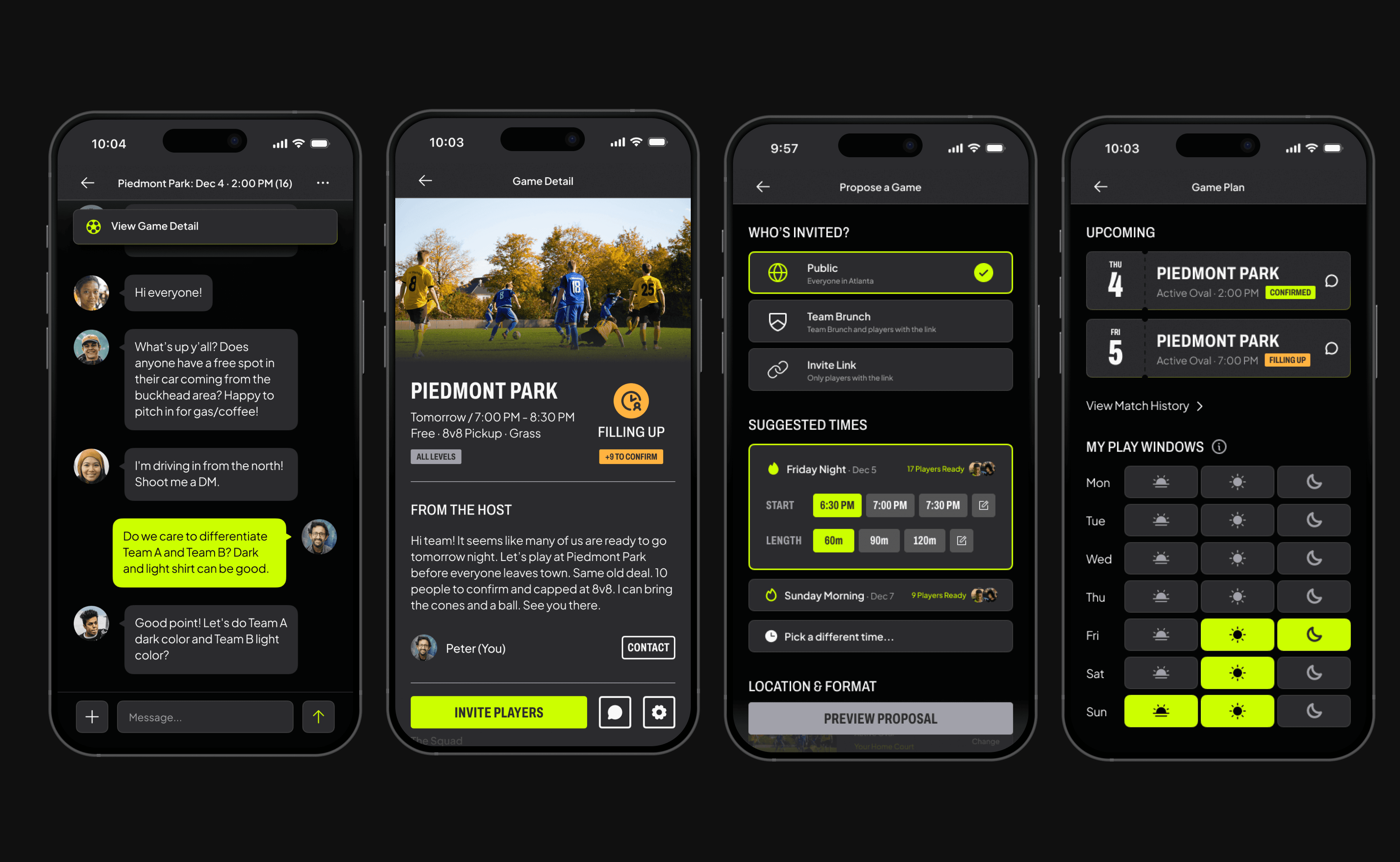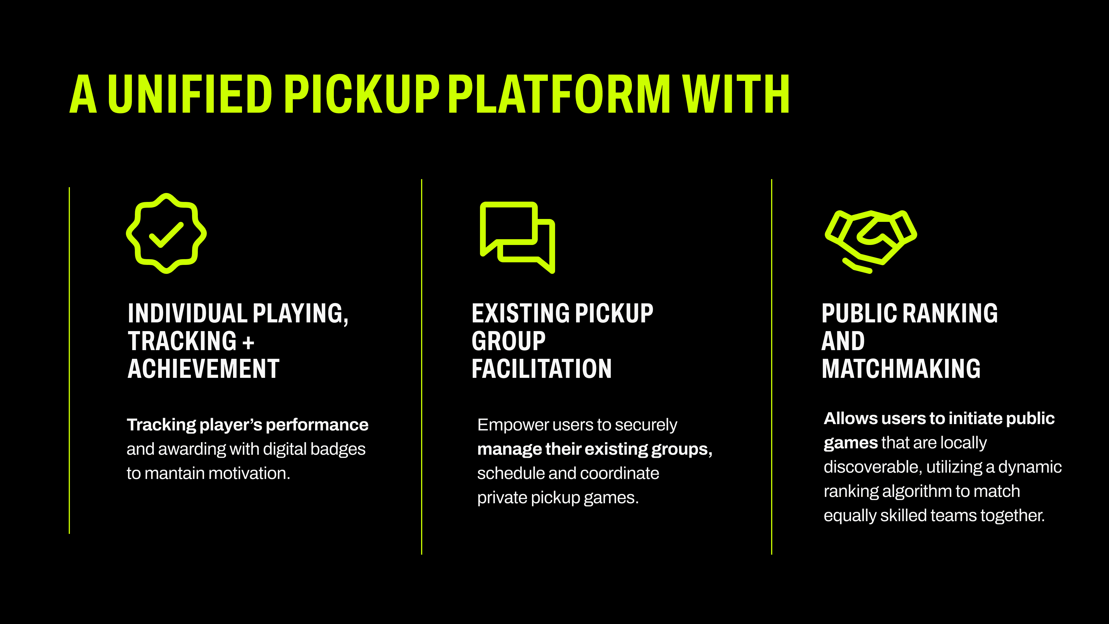 Our initial research highlighted three critical needs: streamlining the organization of pickup matches, creating a welcoming onboarding experience for new players, and reducing community fragmentation. To address this, we aimed to bridge the gap between local subcommunities and the global sport, fostering deeper connections across the U.S. Soccer fanbase.